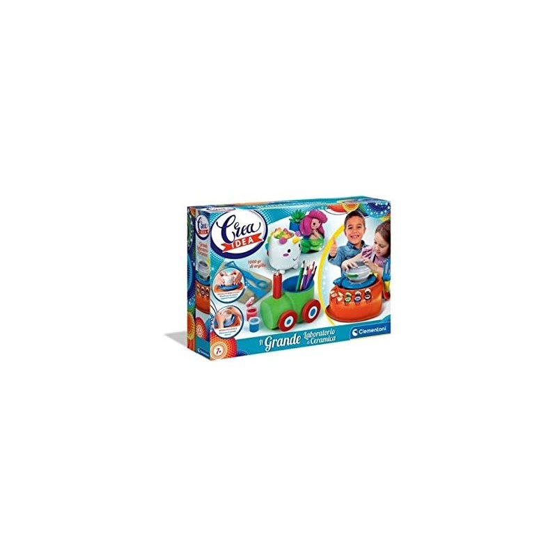 Dai forma alla fantasia e realizza con le tue mani delle creazioni in creta uniche e sorprendenti! Tutto l’occorrente per modellare con lo speciale tornio elettrico. la sagoma in plastica posizionata sul piano rotantee la spatolina modellante,faciliteranno la realizzazione degli oggetti. con gli stampini di forme diverse e gli utensili a disposizione come il coltellino e la miretta potrai ottenere creazioni originali da decorare con le tempere. anni 7+