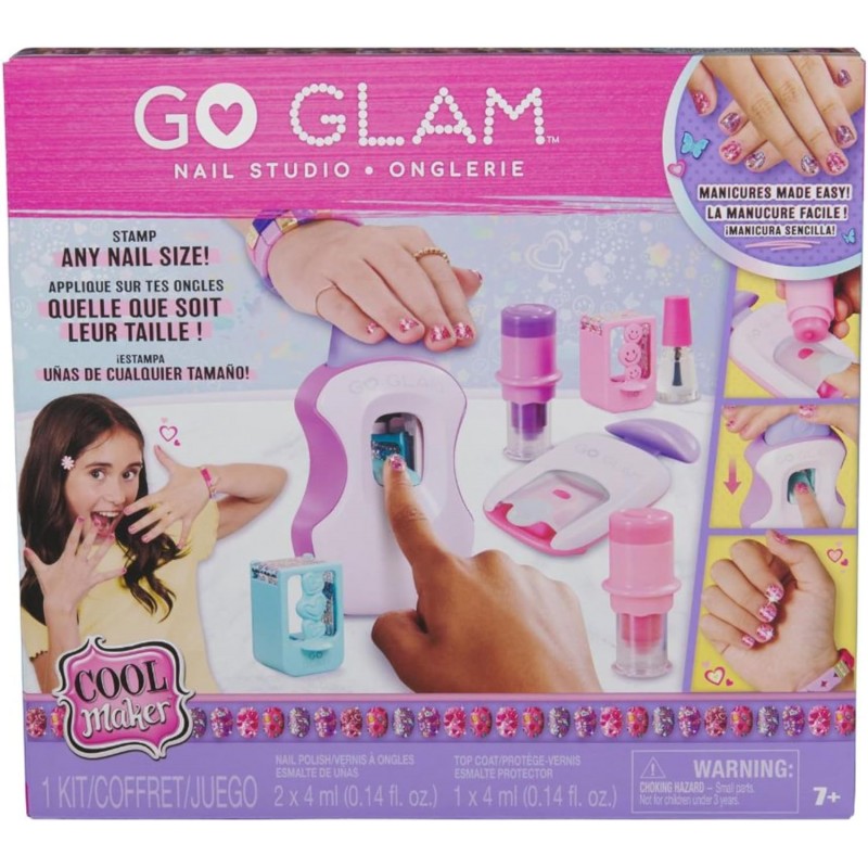 MANICURE SEMPLICISSIME: inserisci, passa lo smalto e premi. È semplicissimo con lo stampo per unghie GO GLAM, i pratici applicatori di smalto, la maschera per unghie e 4 motivi da stampare