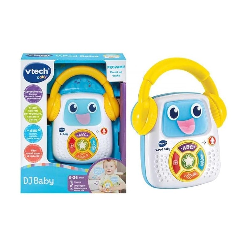 INTERATTIVO: la bocca del robottino si illumina quando DJ Baby interagisce con il bambino; dotato di regolazione del volume e spegnimento automatico per un pratico utilizzo.