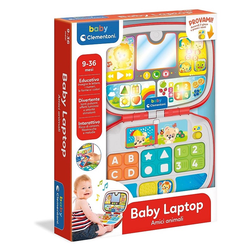 Laptop per bambini gli effetti luminosi, lo specchio per vedersi riflessi, i suoni tipici del mondo dell'informatica e il design di un vero computer portatile lasciando spazio all'immaginazione.