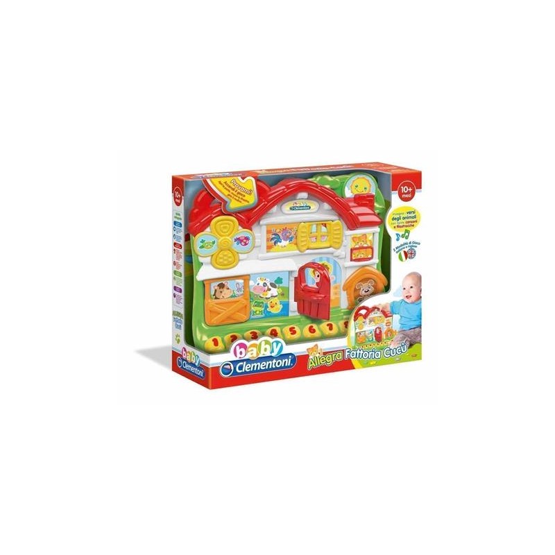 Questa colorata fattoria è anche un divertente centro attività parlante educativo per imparare in compagnia dei 12 allegri personaggi. Insegna i numeri, i nomi e i versi degli animali con tante allegre canzoncine e divertenti filastrocche. La porta si apre, il mulino gira e le finestrelle scorrono con simpatici effetti cucù.