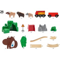 Set ferroviario da 26 pezzi in legno con vagone merci, binari, animali della foresta e panorama