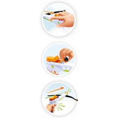 Meccanismo progettato da un'azienda specializzata in arceria: il suo meccanismo e i dardi a ventosa consentono un utilizzo senza rischi!