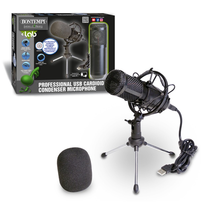 Microfono a condensatore professionale • Ideale per streaming, chat, podcast, canto, registrazione • Compatibile con tutte le principali piattaforme di social media • Pickup cardioide: cattura un suono chiaro, fluido e nitido davanti al microfono ed esclude il rumore di fondo • Plug and Play: utilizzando il Cavo USB da A a B (in dotazione), il microfono può essere facilmente collegato a un computer o laptop; può essere collegato anche ad uno smartphone o tablet tramite adattatore OTG (non incluso). Non è richiesto alcun software driver aggiuntivo o scheda audio • Include: microfono a condensatore, copertura in schiuma antivento, supporto antiurto, treppiede e cavo USB da A a B • Diametro capsula del microfono: Ø 16 mm • Sensibilità: -32db ± 1db • Gamma di frequenza: 20Hz-20KHz • Impedenza di uscita: 150Ω • Cavo USB: 1,4 metri • Materiale: lega di alluminio • Frequenza di campionamento: 48000Hz • Profondità bit: 16Bit/24Bit • Dim.: 235x165x165 mm