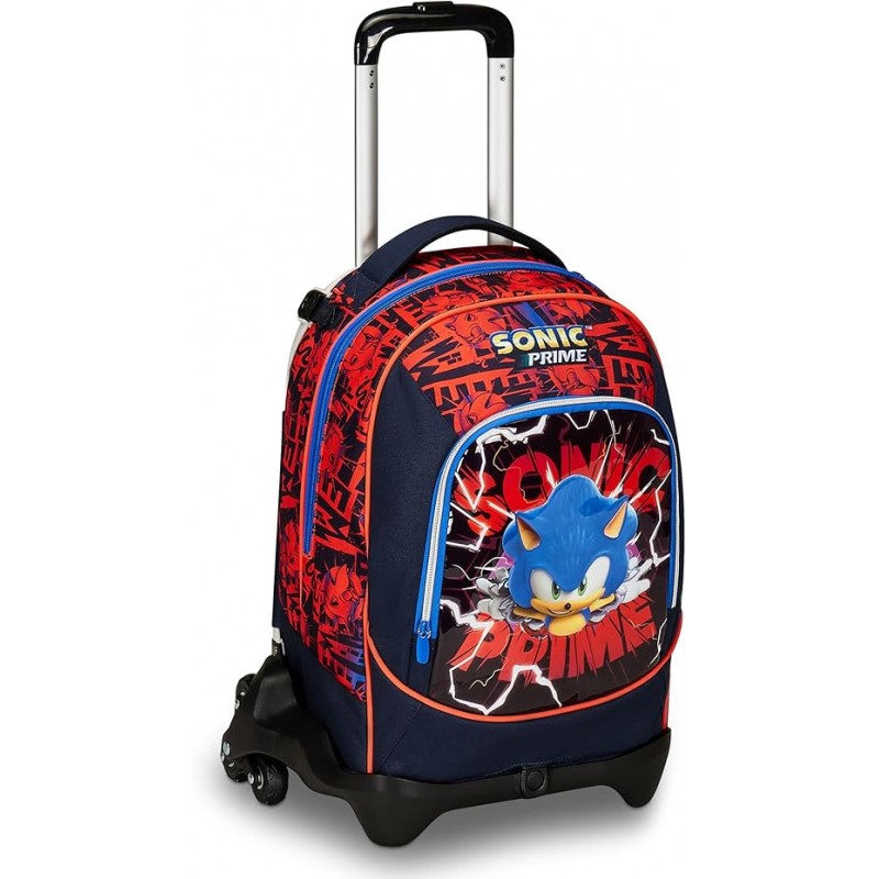 ALTRE CARATTERISTICHE: Trolley scomponibile con doppio scomparto, tasca frontale, dotato di sistema a tre ruote e Crossover System con nastri agganciati tramite clips, carrello amovibile con asta in metallo, barra doppia telescopica con doppio scatto, fondo rigido imbottito. Tasca frontale stampata su PVC imbottito e sagomato. Elastico interno porta borraccia.