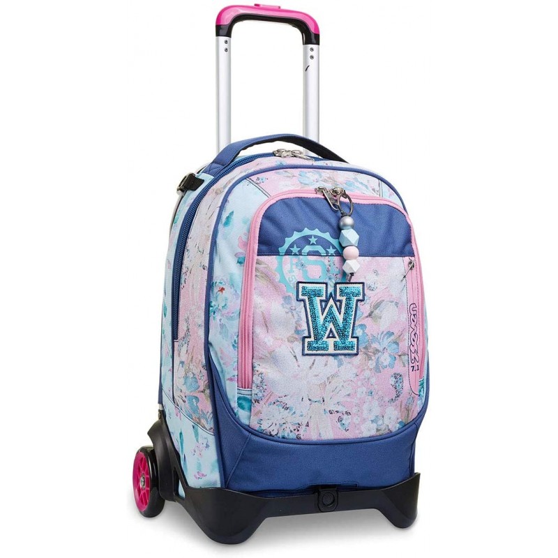 SCHIENALE: Imbottito e rivestito in tessuto. SPALLACCI: Imbottiti e rivestiti in tessuto e rete traspirante. CROSSOVER SYSTEM: i ganci sollevano gli spallacci quando usato come trolley.