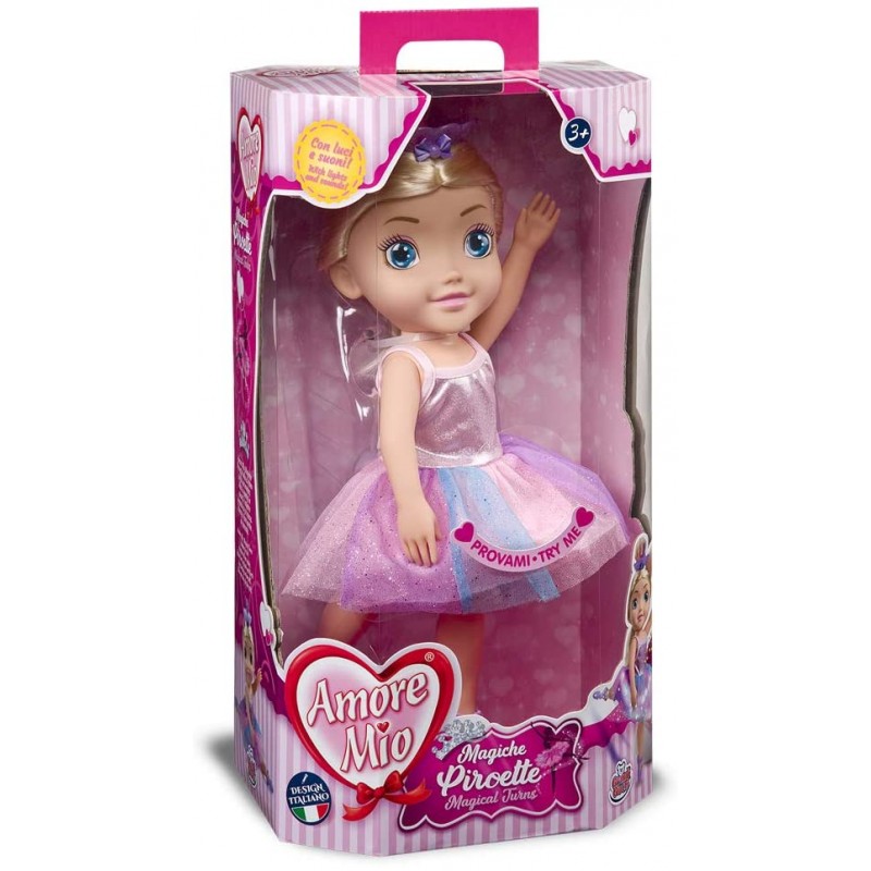 Tenere la cima della corona e tirare verso l'alto per vedere la ballerina muovere i primi passi di danza.Magiche Piroette riproduce anche una dolce musichetta.