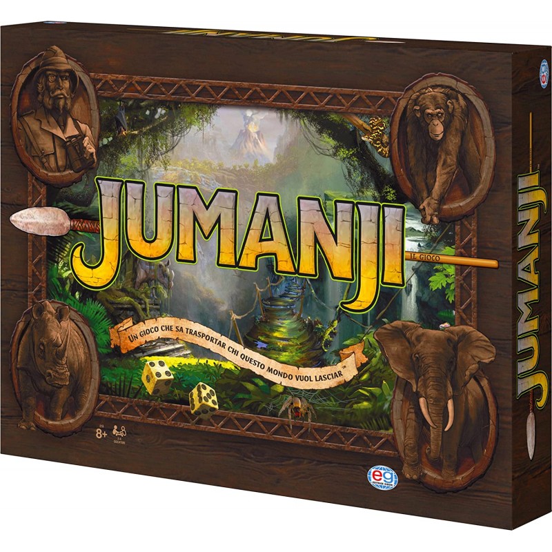 AVVENTURIERI ATTENZIONE: QUESTO GIOCO NON INIZIATE SE NON INTENDETE TERMINARE! Jumanji Questo gioco porta voi e i vostri compagni di avventura in una missione attraverso la giungla, risolvendo enigmi e completando sfide mentre cercate di non perdere i vostri Gettoni Vita