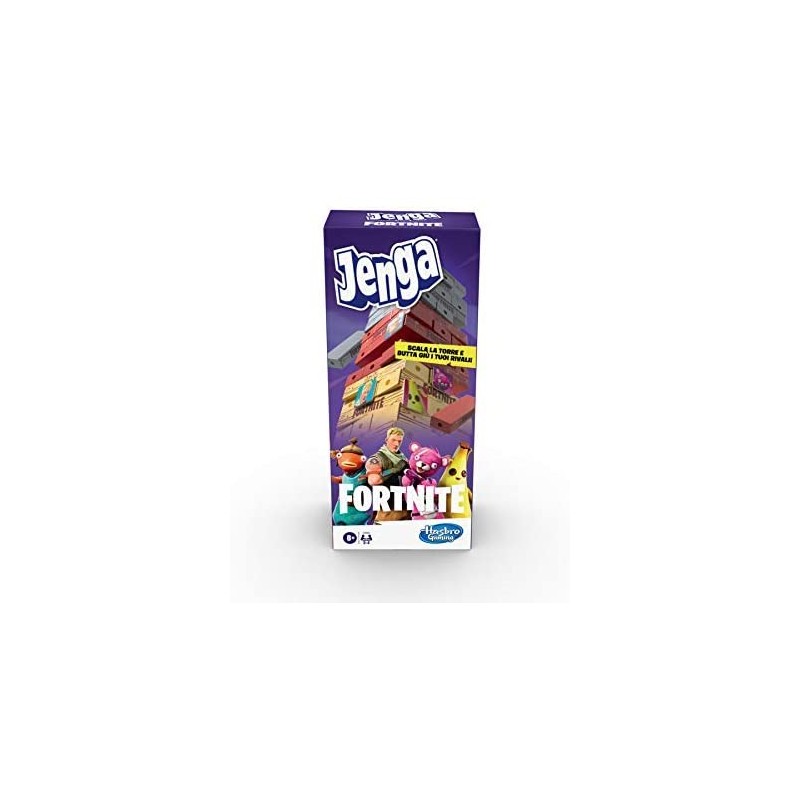 Gioco Jenga con una variante Fortnite: si tratta di un gioco jenga arricchito di materiale grafico, temi e personaggi ispirati al celebre Videogioco online Fortnite. Gira, impila e scala: i giocatori girano la ruota e seguono le indicazioni: il numero e i tipi di blocchetti da impilare e quanti livelli deve scalare il proprio personaggio Fortnite. Non fallire: i giocatori muovono i propri segnalini in alto e quelli degli avversari in basso nel rimuovere e impilare i blocchetti; tuttavia, se la torre crolla mentre scalano o impilano i blocchetti, avranno perso. Lotta fino alla vetta: il primo Giocatore a inserire il proprio segnalino personaggio fortnite all'interno di uno dei fori posizionati nella parte superiore della torre sarà il vincitore. ANNI 8+ GIOCATORI 2-4