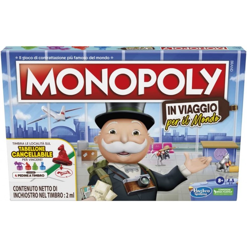 In questa versione di Monopoly In Viaggio per il Mondo, i giocatori immaginano di visitare diverse località mentre raggiungono gli obiettivi di viaggio, scoprono curiosità divertenti e completano i viaggi per vincere.
