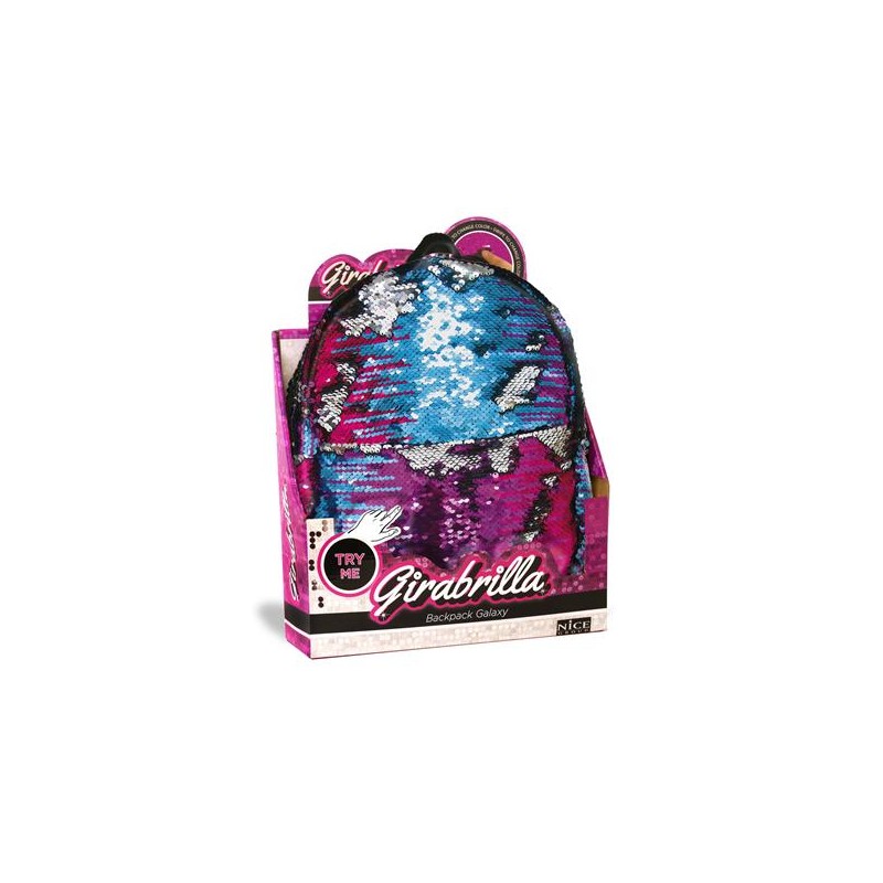 Zainetto scintillante ricoperto da uno strato di paillettes reversibili di colore sfumato sulla tonalità "galaxy" e argento.