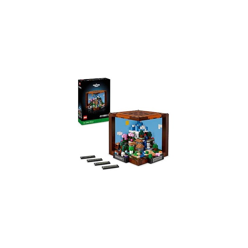 Costruzione per adulti LEGO Minecraft con 12 biomi: include Deep Dark, Grotta lussureggiante, Palude, Pianura, Foresta, Ciliegi in fiore, Deserto, Taiga, Taiga innevata, Grotta di speleotemi, Spuntoni di ghiaccio e Fiume.